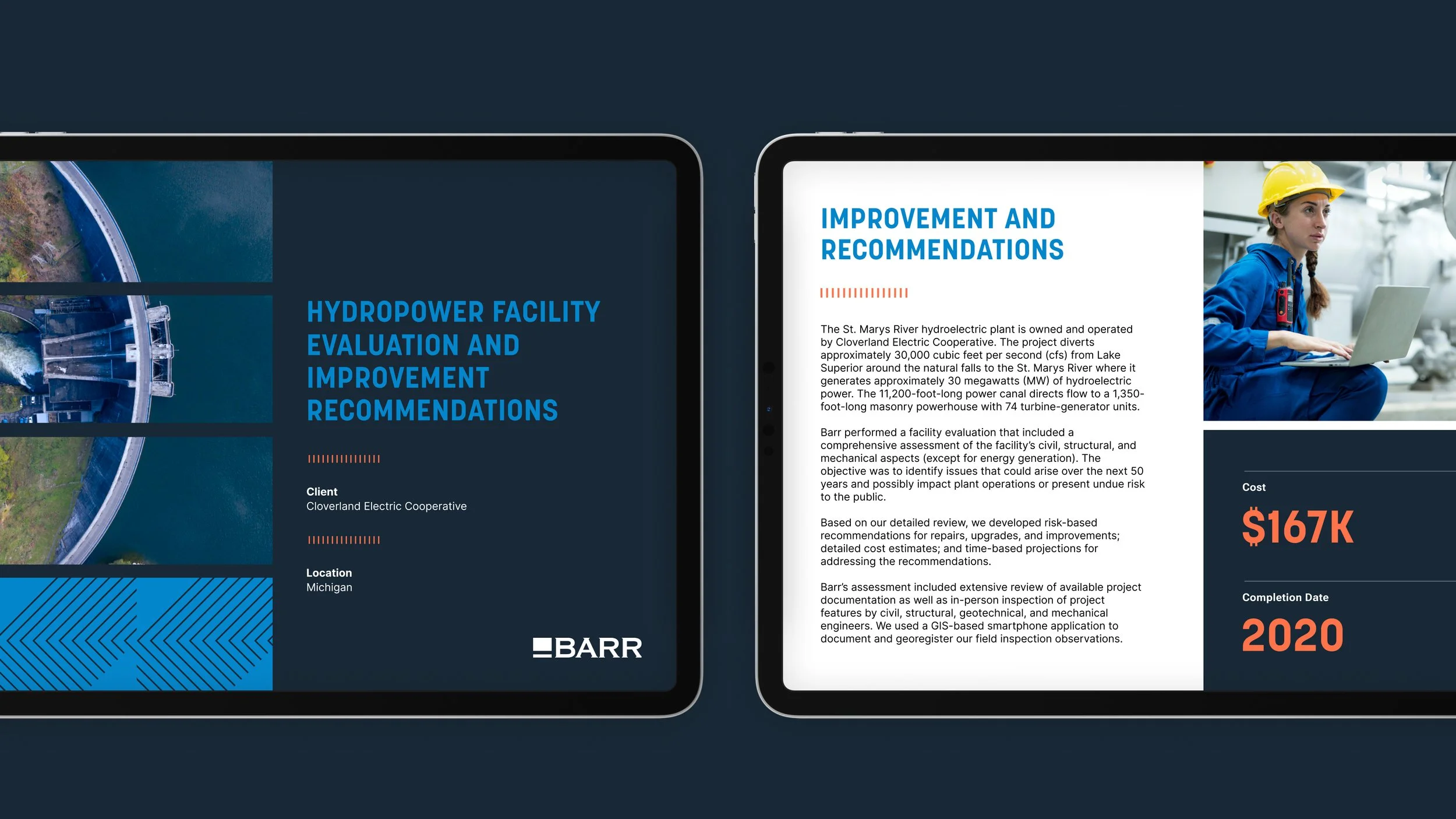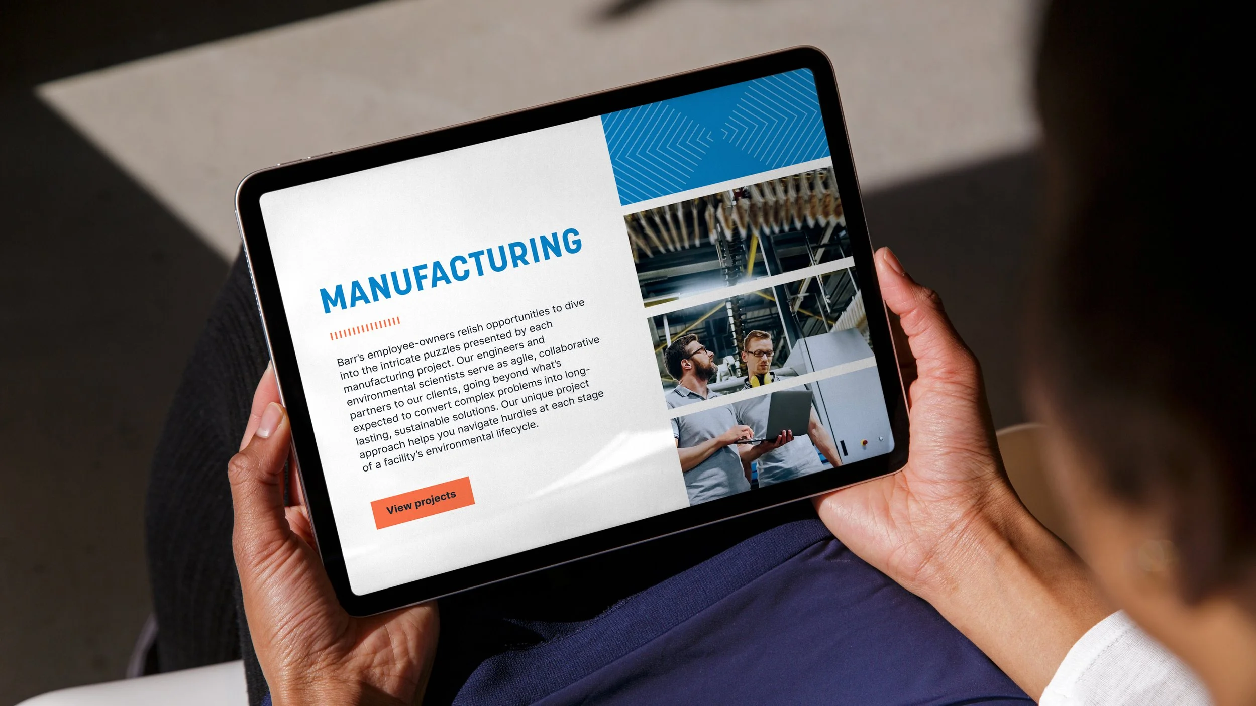 Barr Engineering tackles high-stakes challenges with custom solutions that go beyond technical expertise. Exceptional client service is at the heart of everything they do, and solving complex problems is what drives their team. The visual language—bold, structured, and anchored by a framing motif—reinforces Barr’s strong foundation, while dynamic patterns add texture and showcase their expertise and technical capabilities throughout the design system.