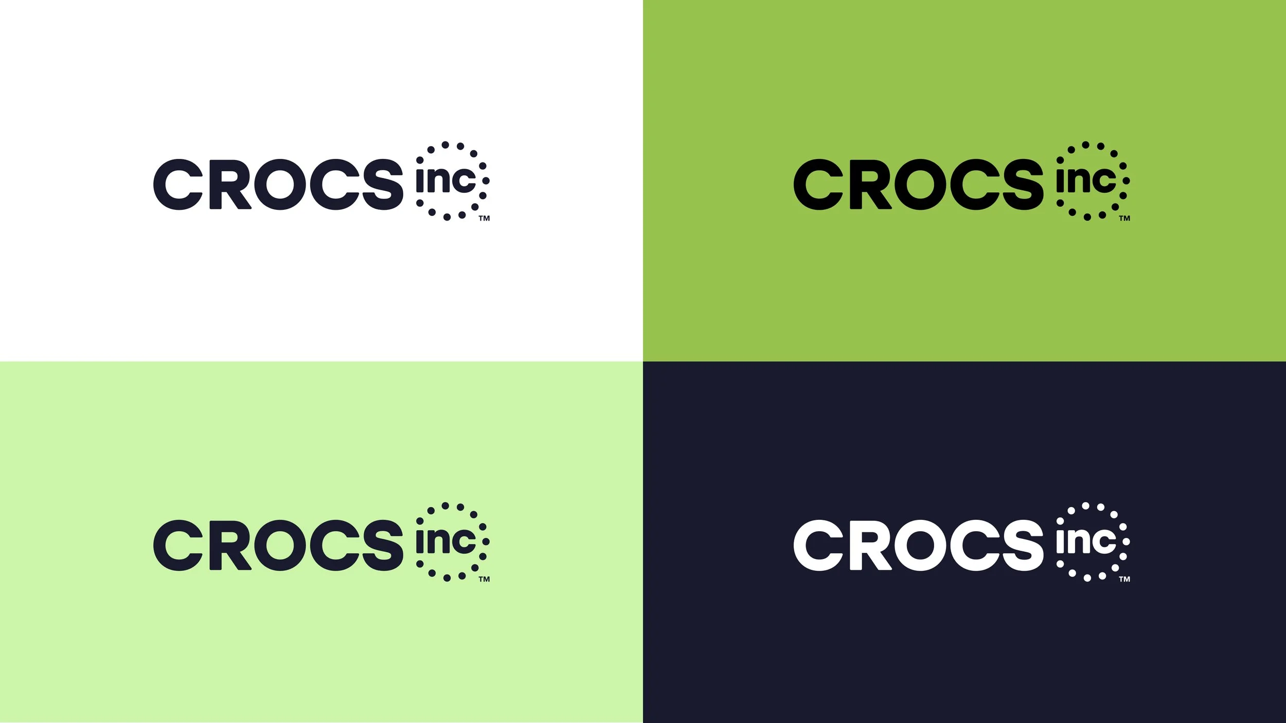 Our Crocs, Inc. logo builds upon the equities of the Crocs logo using rounded, geometric letterforms but in a more serious uppercase treatment. The word inc is emphasized by the dot of the ’i ‘continuing into a circle to hold the word, highlighting the connections and coordination between our people, processes and businesses.